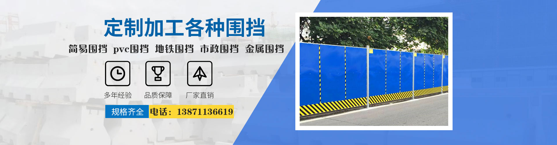 湖北章輝泓宇工程有限公司專(zhuān)注于生產(chǎn)及銷(xiāo)售各類(lèi)圍擋產(chǎn)品,主要有:簡(jiǎn)易圍擋、pvc圍擋、地鐵圍擋、市政圍擋、金屬?lài)鷵?/a>、工地圍擋等建材,誠(chéng)信經(jīng)營(yíng)十五年,客戶(hù)遍及全國(guó),期待與您真誠(chéng)合作。